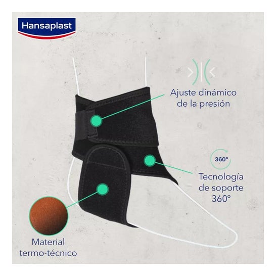Hansaplast Ankle Brace 1pc est une orthèse de cheville réglable qui offre un soutien sûr pour prévenir les blessures pendant l'activité physique. Conçue avec une technologie de soutien à 360° qui apporte un soutien enveloppant et une stabilité à la cheville, elle permet également un ajustement dynamique qui réduit l'effort excessif et soulage la douleur, ainsi que le Termo-Tech, un matériau coloré qui favorise la circulation. Convient pour soutenir la cheville. *Pour des raisons d'hygiène, ce produit n'est pas retournable une fois ouvert. Il ne peut être retourné que s'il est scellé et si la boîte ne présente aucun signe d'altération.