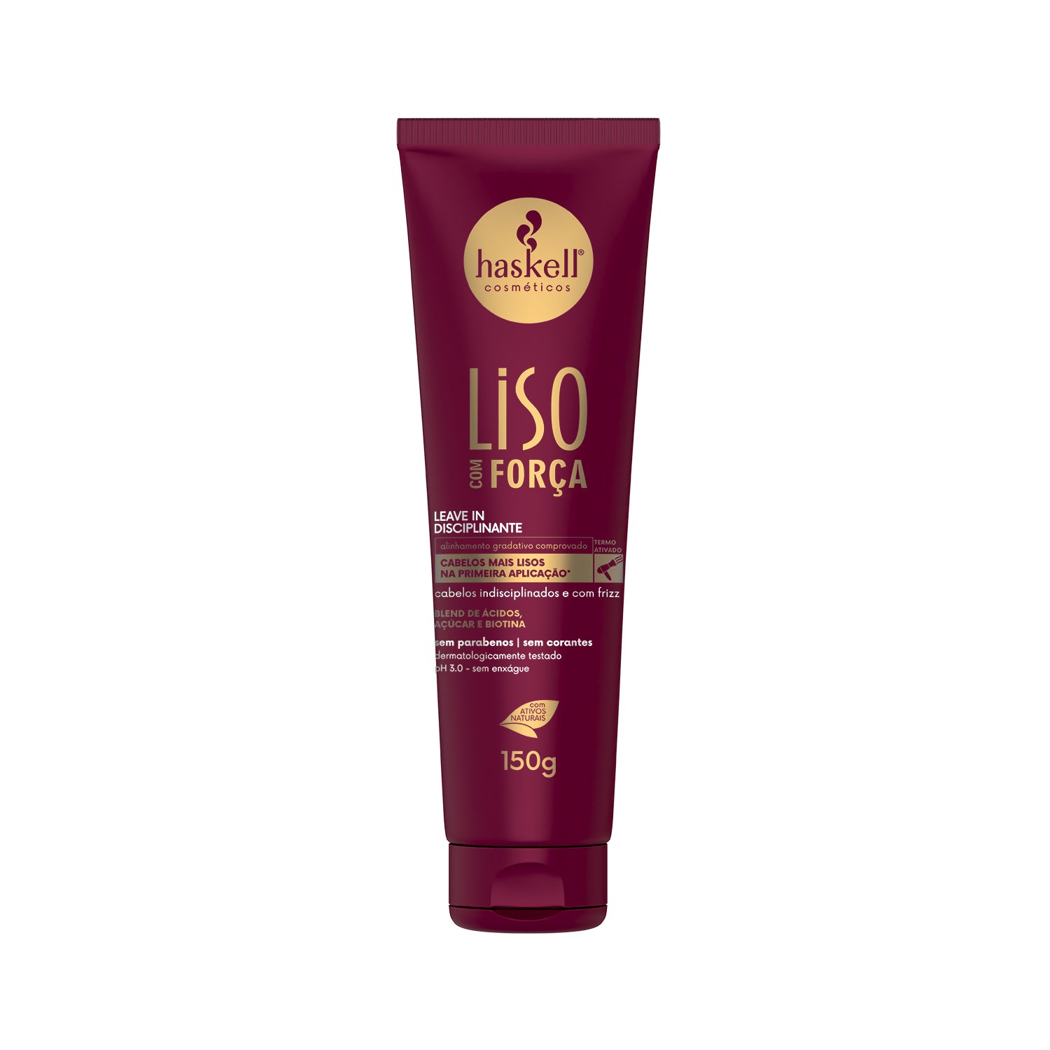 Haskell Liso Com Força Finalizador 150ml est un produit conçu pour obtenir des cheveux lisses, forts et sans frisottis. Sa formule avancée agit sur la fibre capillaire, lissant et renforçant des racines aux pointes, étant idéal pour les cheveux rebelles ou ayant tendance au frizz.