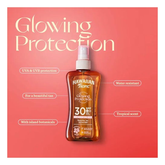 Hawaiian Tropic Protective Huile Protectrice Sèche SPF30 200ml est une huile sèche en spray qui aide à protéger la peau des rayons UVA et UVB avec un facteur de protection solaire SPF30.