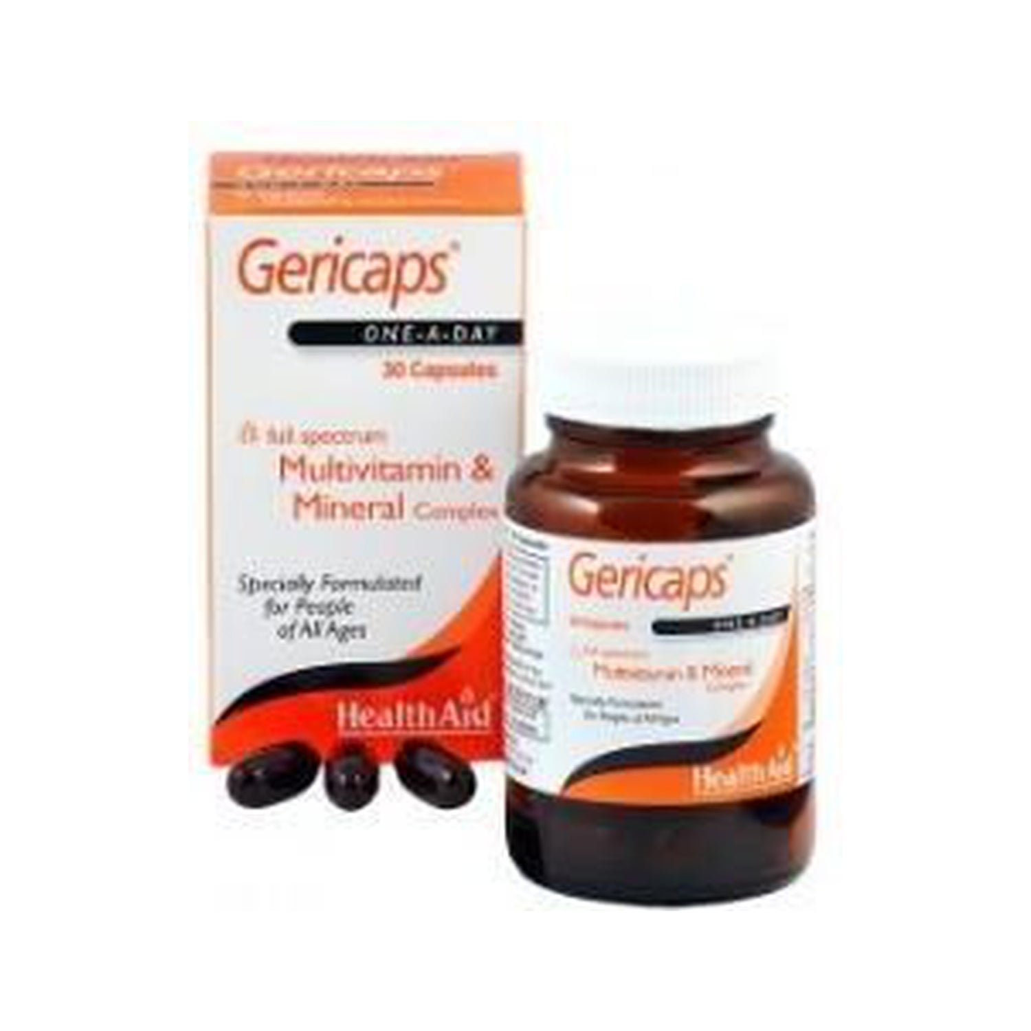 Les gélules actives Health Aid Gericaps aident à revitaliser le corps, permettent un style de vie plus actif, maximisent les niveaux d'énergie et aident à réduire le stress et l'épuisement de la routine quotidienne.