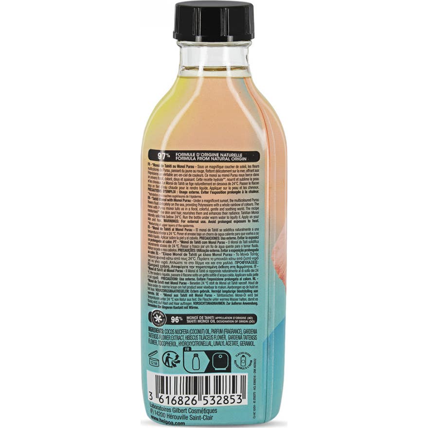 Inspiré par les paysages colorés de la Polynésie, ce Monoï présente des notes florales et chaudes qui évoquent la tranquillité d'un coucher de soleil. Les fleurs de Purau, qui changent de couleur tout au long de leur cycle de vie, ajoutent une touche spéciale à l'expérience sensorielle du produit, t'enveloppant dans une ambiance relaxante et pleine de couleur.