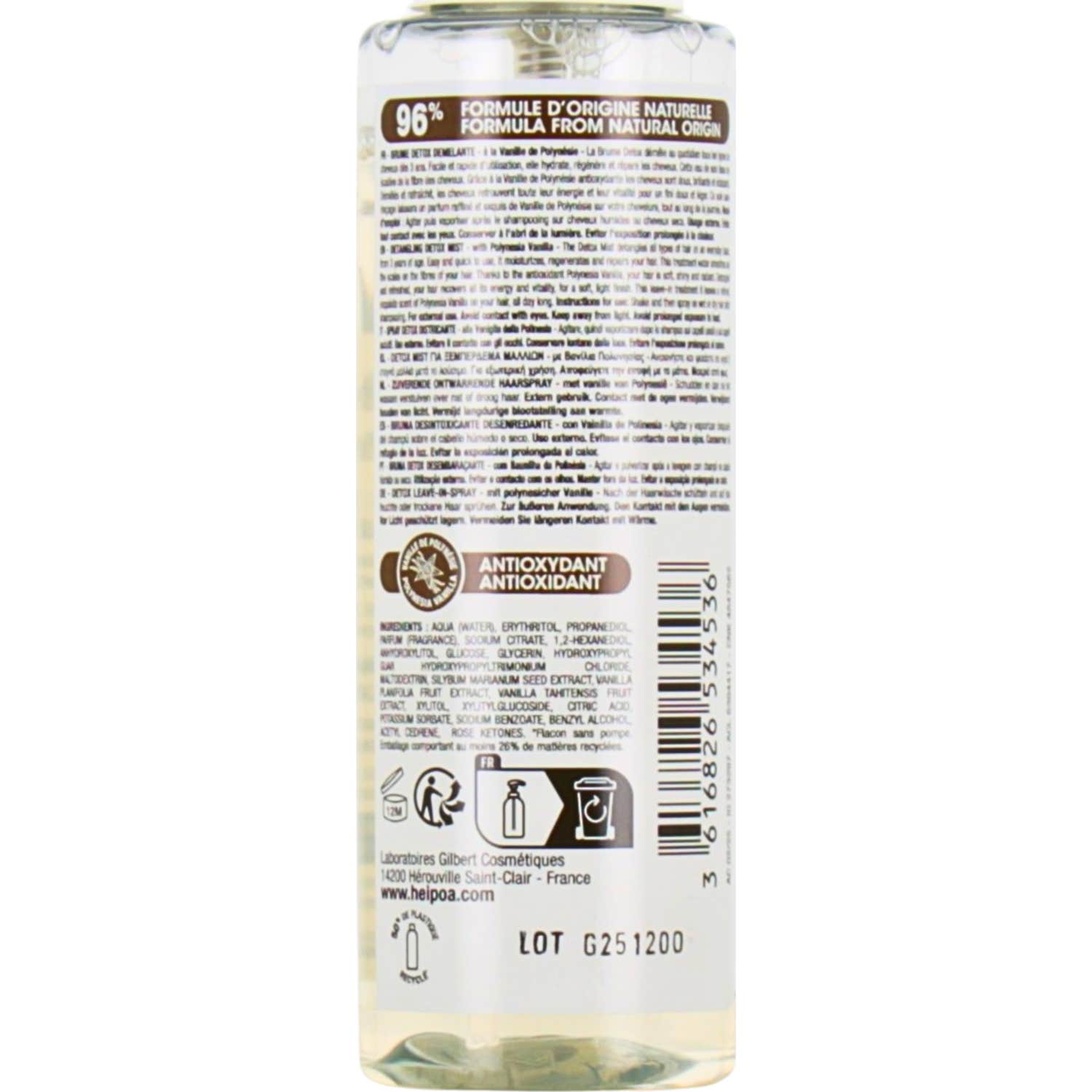 Hei Poa Tahiti Detox Brume Detox Démêlante est un produit conçu pour faciliter le démêlage de tous types de cheveux à partir de 3 ans. Cette brume, qui ne nécessite pas de rinçage, s'applique rapidement et facilement, offrant hydratation et réparation à la fibre capillaire lors d'une utilisation quotidienne.