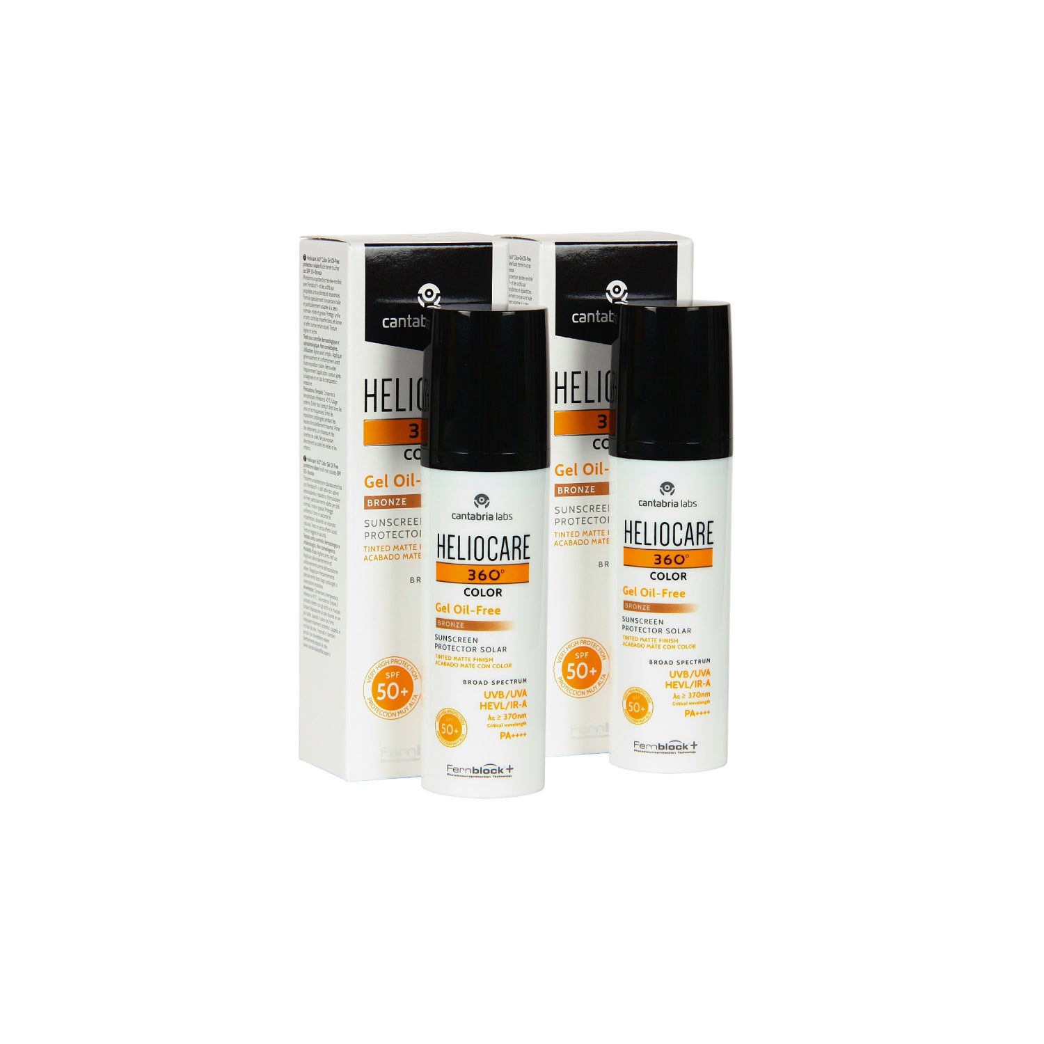 Heliocare 360° Color Gel Oil Free SPF50+ Bronze 2x50ml est un photoprotecteur qui aide à protéger la peau contre la radiation UVB, UVA, IR.