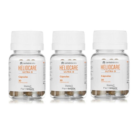 Heliocare Ultra-D Pack de 3x30caps est un complément alimentaire sous forme de gélules qui aide à stopper les dommages causés par le photovieillissement, ainsi qu'à prévenir l'apparition des taches cutanées causées par l'exposition au soleil.
