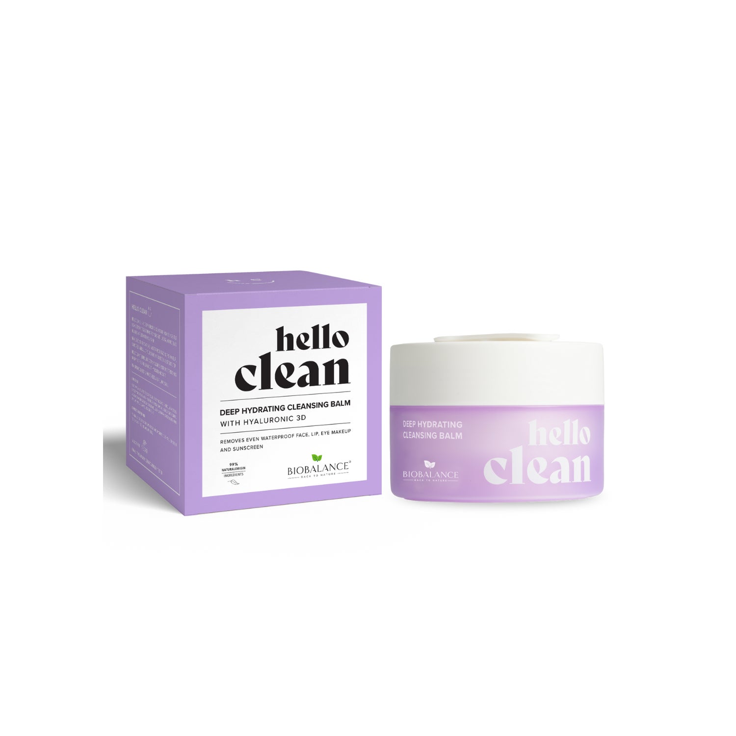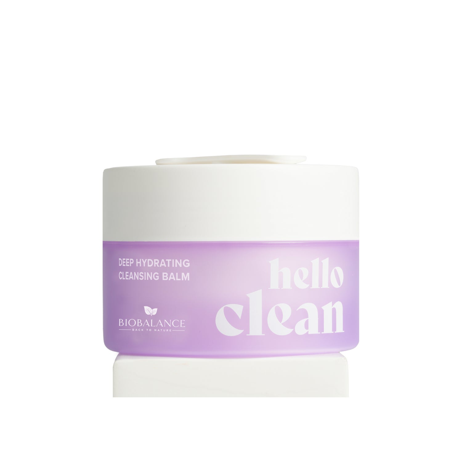 Hello Clean baume nettoyant réducteur de pores 3 en 1 est un nettoyant doux qui se transforme d'un baume à la texture similaire à un sorbet en une huile soyeuse lorsqu'il est appliqué sur la peau.