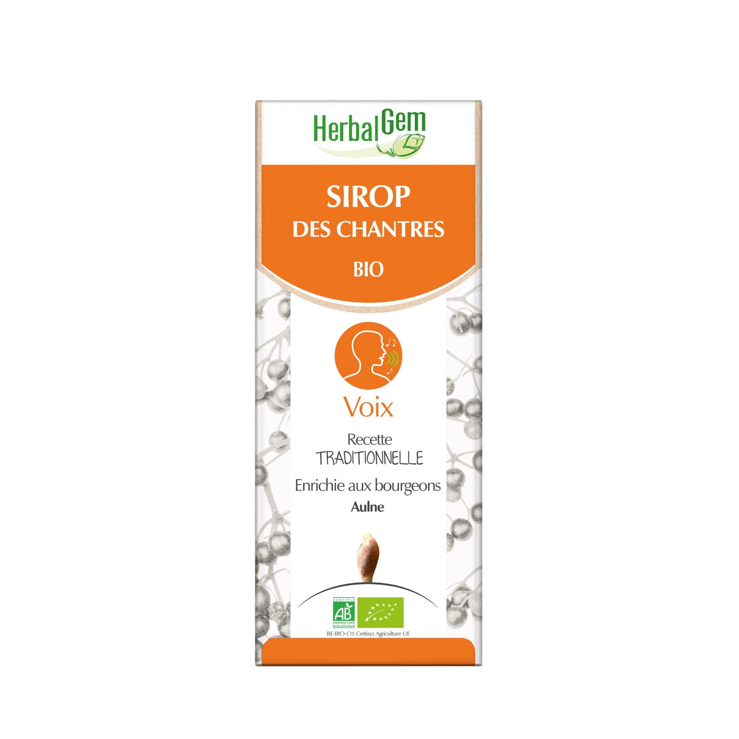 Sirop de fleurs de sureau* (sambucus nigra L.), sirop de sisymbrium officinale* (sisymbrium officinale (L.) Scop.), sirop de pulmonaire* (pulmonaire officinale L.), sirop d'aunée* (inula helenium L.), eau, sucre de canne* , miel*, alcool (<1% vol.), teinture d'herbe à chanter* (sisymbrium officinale (L.) Scop.), glycérine végétale*, extrait de bourgeon d'aulne (alnus glutinosa (L.) Gaertn.), huiles essentielles de citron* (citrus limon (L.) Burm. f.), de cannelle* (cinnamomum zeylanicum blume) et de citronnelle* (cympobogon citratus (DC) Stapf.).