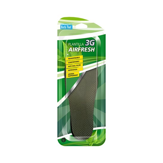 Herbifeet Semelle Airfresh 3G Taille S 1 Paire offre un maximum de confort et de fraîcheur pour le soin quotidien des pieds, en particulier dans des situations de transpiration ou lors de longues journées d'activité. Son design anatomique avec une base en gel et des zones perforées favorise la transpiration et le confort dans les chaussures, maintenant les pieds secs et exempts de mauvaises odeurs. Ces semelles disposent d'un système avancé de respirabilité qui permet le passage de l'air dans les zones perforées et d'une doublure spéciale qui améliore la ventilation, évitant l'accumulation de sueur. Son effet amortissant et anti-fatigue réduit l'impact lors de la marche et soulage la fatigue, offrant un confort immédiat même après plusieurs heures d'utilisation. Elles se distinguent par leur capacité à neutraliser les mauvaises odeurs grâce à l'arôme de menthe, leur adaptabilité à différents types de chaussures et l'inclusion d'une élévation métatarsale qui améliore l'ergonomie et le bien-être à chaque pas.