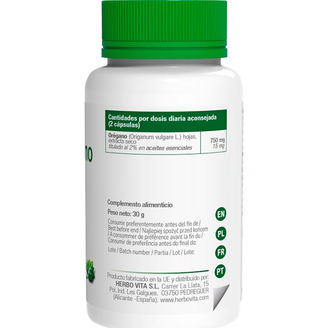 Un complément alimentaire à base de feuilles d'origan 100% biologiques. Il possède des propriétés antibactériennes, antiparasitaires et antifongiques. Il agit comme un stimulant des processus digestifs, des troubles gastro-intestinaux, aide à soulager les migraines, surtout celles d'origine nerveuse, les otites, les bronchites, les douleurs musculaires, les maux de dents, les allergies, la fatigue et est légèrement diurétique. Il contribue au bon fonctionnement de l'appareil urinaire.