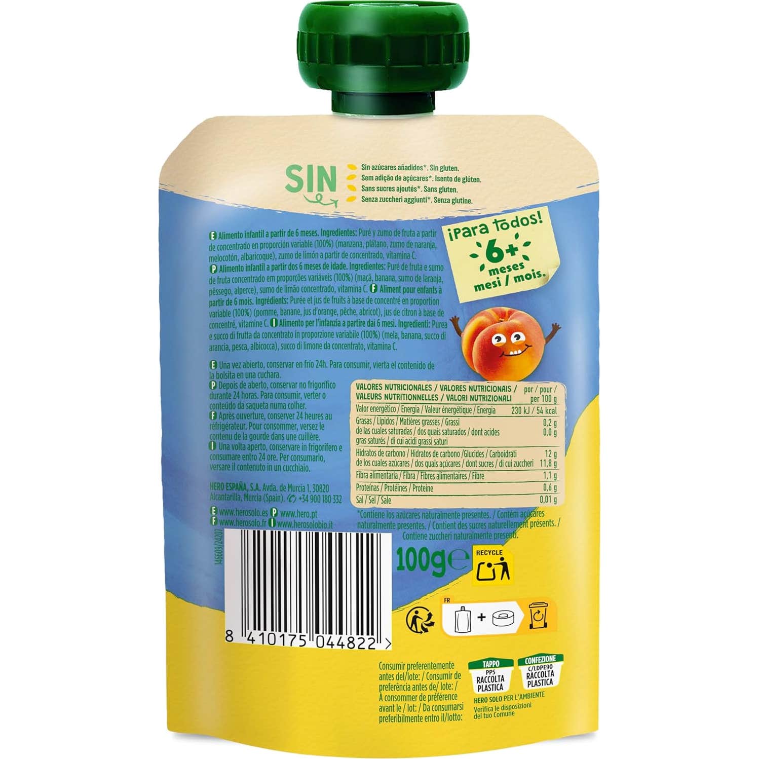 Hero Mi Fruta Méditerranée 100 g est un sachet de fruits conçu comme alimentation complémentaire à partir de 6 mois. Il est élaboré avec 100% de fruits sélectionnés, sans sucres ajoutés, sans huile de palme et sans gluten. Son format de 100 g est pratique et ne nécessite pas de réfrigération.
