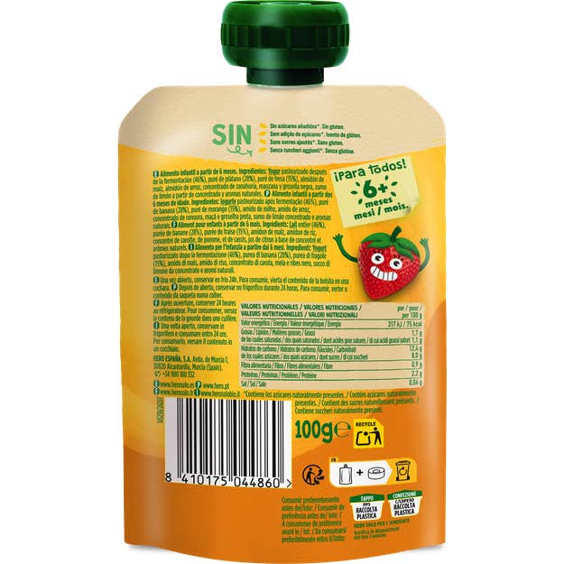 Hero Solo Yaourt Banane et Fraise est un produit conçu pour offrir une alimentation naturelle et nutritive aux bébés à partir de 6 mois. Ces sachets sont élaborés avec une sélection soignée de fruits qui garantissent un apport équilibré dans l'alimentation infantile.