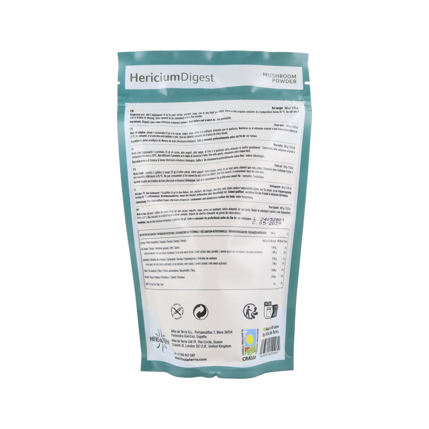 Aliment bio élaboré avec de la poudre de champignon crinière de lion. La crinière de lion ou hericium erinaceus est un champignon avec des propriétés médicinales, il aide à la récupération des blessures causées dans le système nerveux en stimulant la croissance et la réparation des neurones.