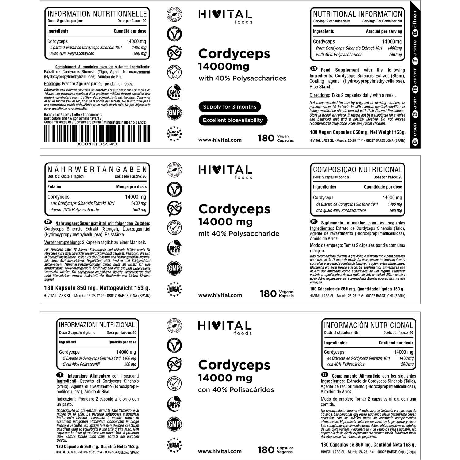 LE MEILLEUR CORDYCEPS : Chaque dose (2 capsules) est élaborée avec 1400 mg d'Extrait Naturel de Cordyceps Sinensis concentré avec un ratio 10:1 et 40% de Polysaccharides, apportant :