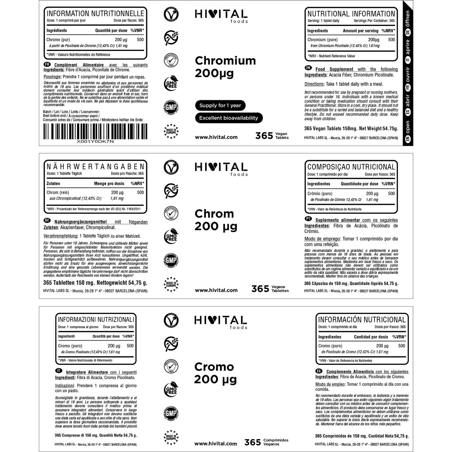 FABRIQUÉ EN ESPAGNE sous certificats GMP et ISO. Hivital Foods est enregistrée en santé (AESAN) avec le numéro 26.019181B.