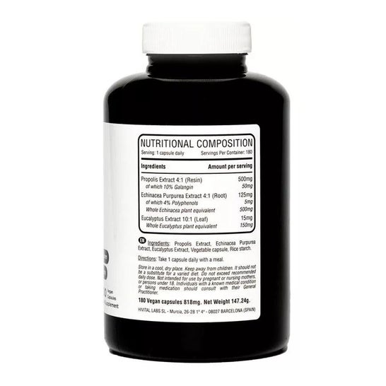Gélules conçues à base de propolis, échinacée et eucalyptus qui aident à maintenir la santé du système respiratoire. De plus, elles contribuent à renforcer le système immunitaire, particulièrement intéressant pendant les mois les plus froids de l'année.