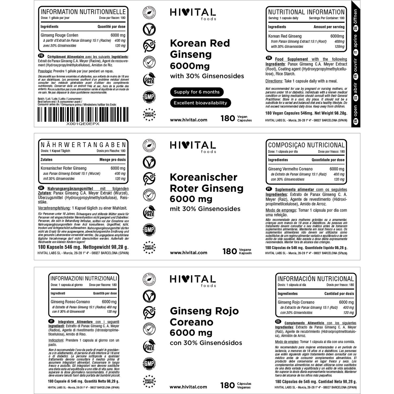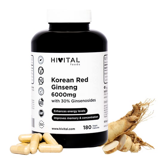 LE MEILLEUR GINSENG ROUGE : Élaboré avec de l'Extrait de racine de Panax Ginseng C. A. Meyer, plus puissant, plus biodisponible et avec de plus grandes quantités de principes actifs que le Ginseng Blanc ou Sibérien. En plus des Ginsénosides, le Ginseng Rouge contient également une multitude de :