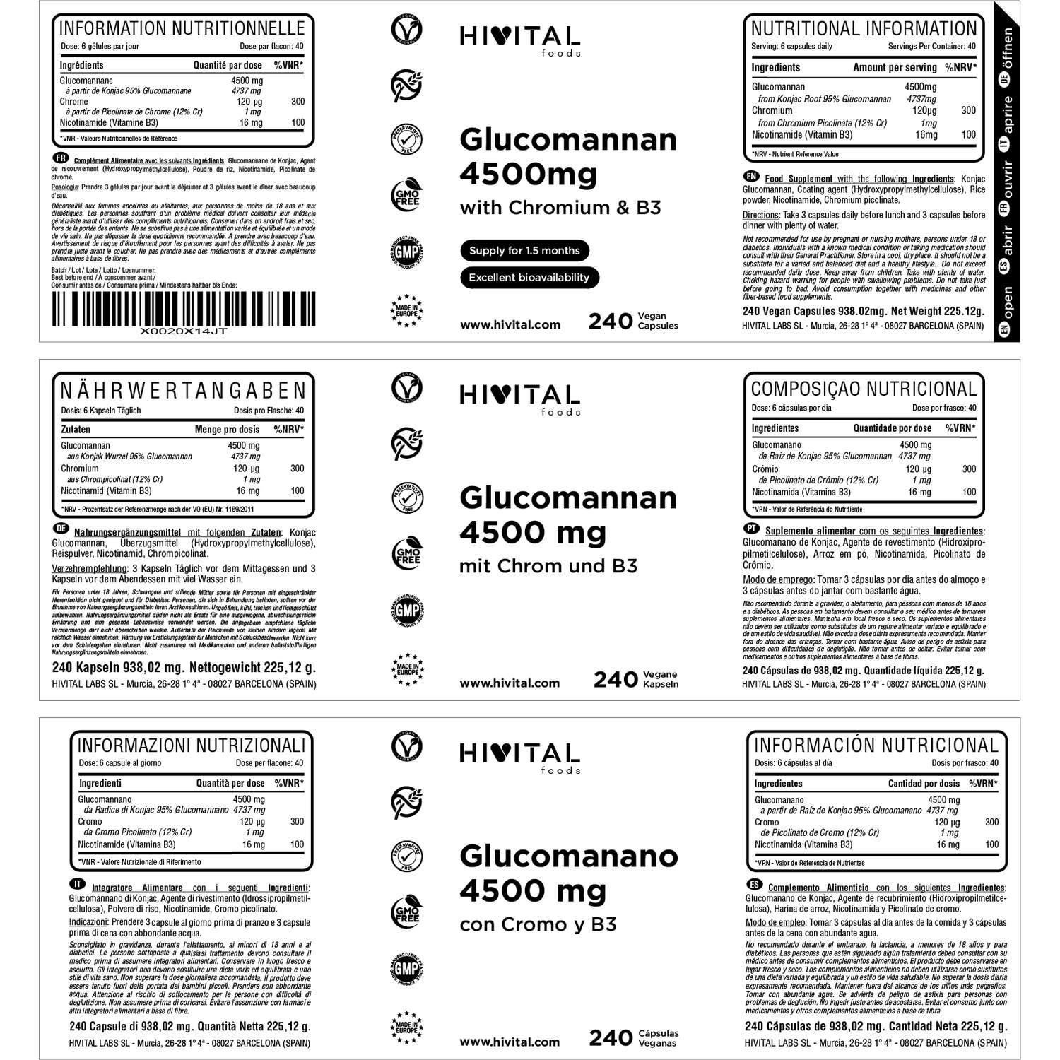 - 4500 mg de Glucomannane Naturel à partir de la racine de Konjac