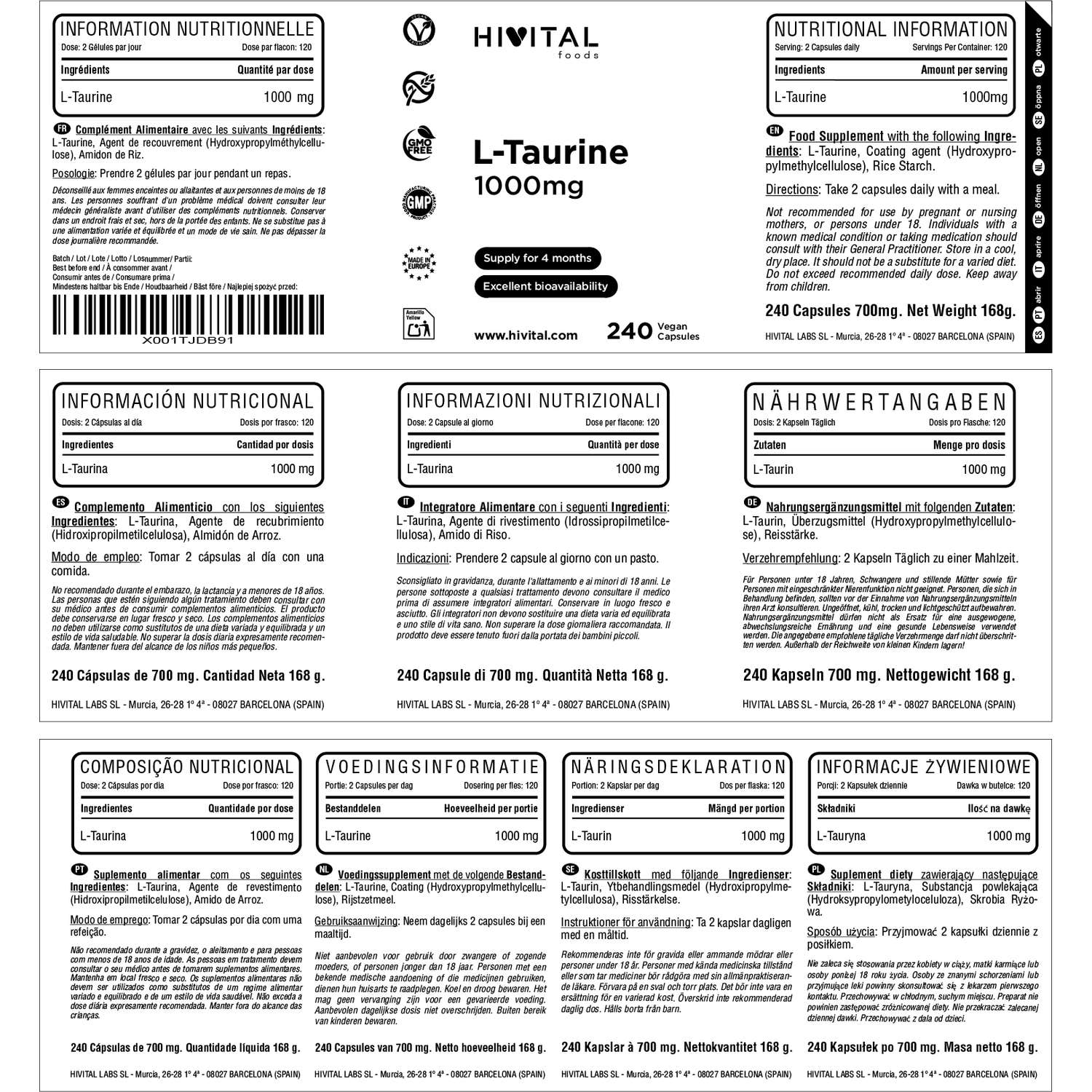 LA MEILLEURE TAURINE : Chaque dose (2 capsules) est élaborée avec 1000 mg de L-Taurine pure.