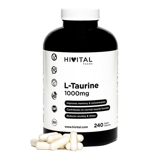 EXCELLENTE FORMULE à base de L-Taurine pure, un acide aminé présent sous forme libre dans l'organisme mais en quantités limitées, qui aide l'organisme dans de nombreux domaines.