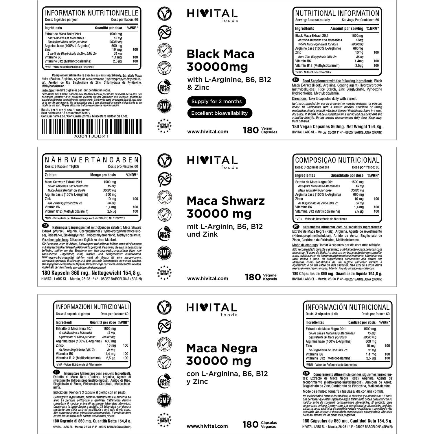 EXCELLENTE FORMULE à base d'extrait naturel de Maca Noire Péruvienne, L-Arginine, Zinc, Vitamine B6 et Vitamine B12.