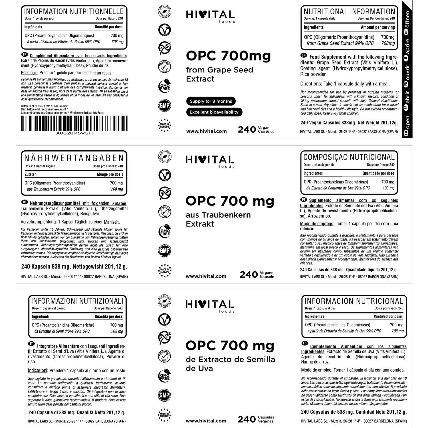 LES MEILLEURES OPC : Chaque capsule est élaborée avec 708 mg d'Extrait de Graines de Raisin français (Vitis Vinifera L.) à 99% en OPC (Proanthocyanidines Oligomériques) apportant 700 mg par capsule.