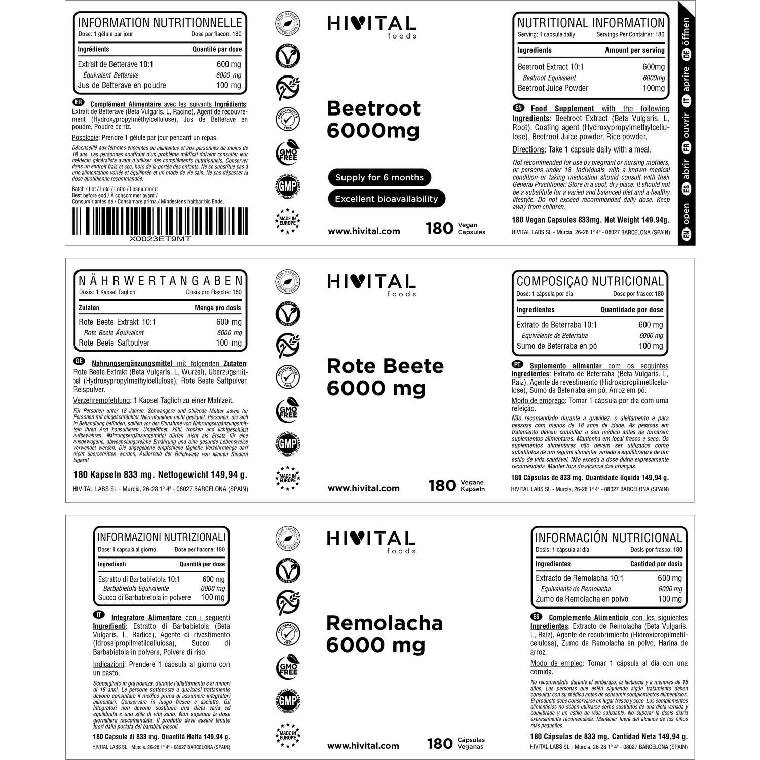 - 600 mg d'Extrait Naturel de racine de Betterave concentré à 10:1, apportant 6000 mg de Betterave