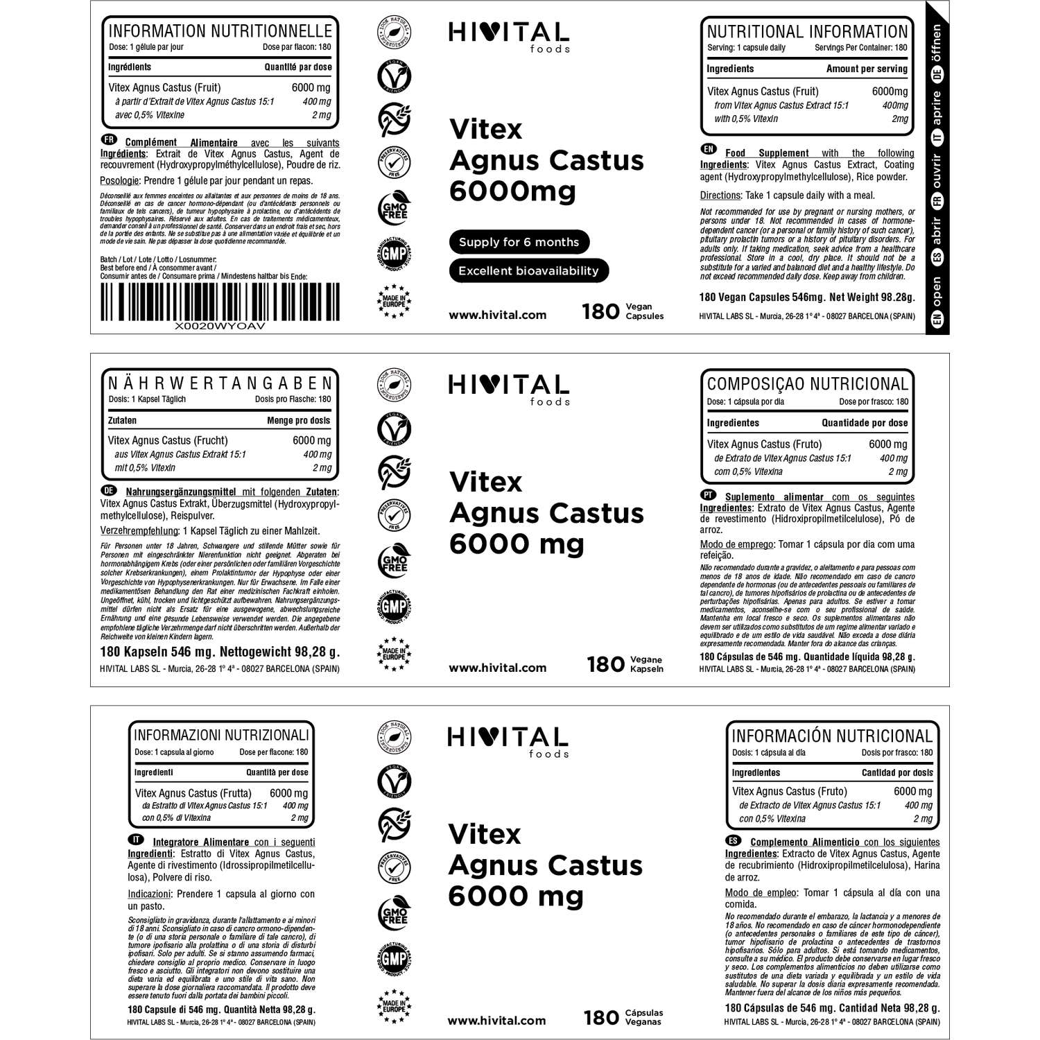 FABRIQUÉ EN ESPAGNE sous certificats GMP et ISO. Hivital Foods est enregistrée auprès de la santé (AESAN) avec le numéro 26.019181B.