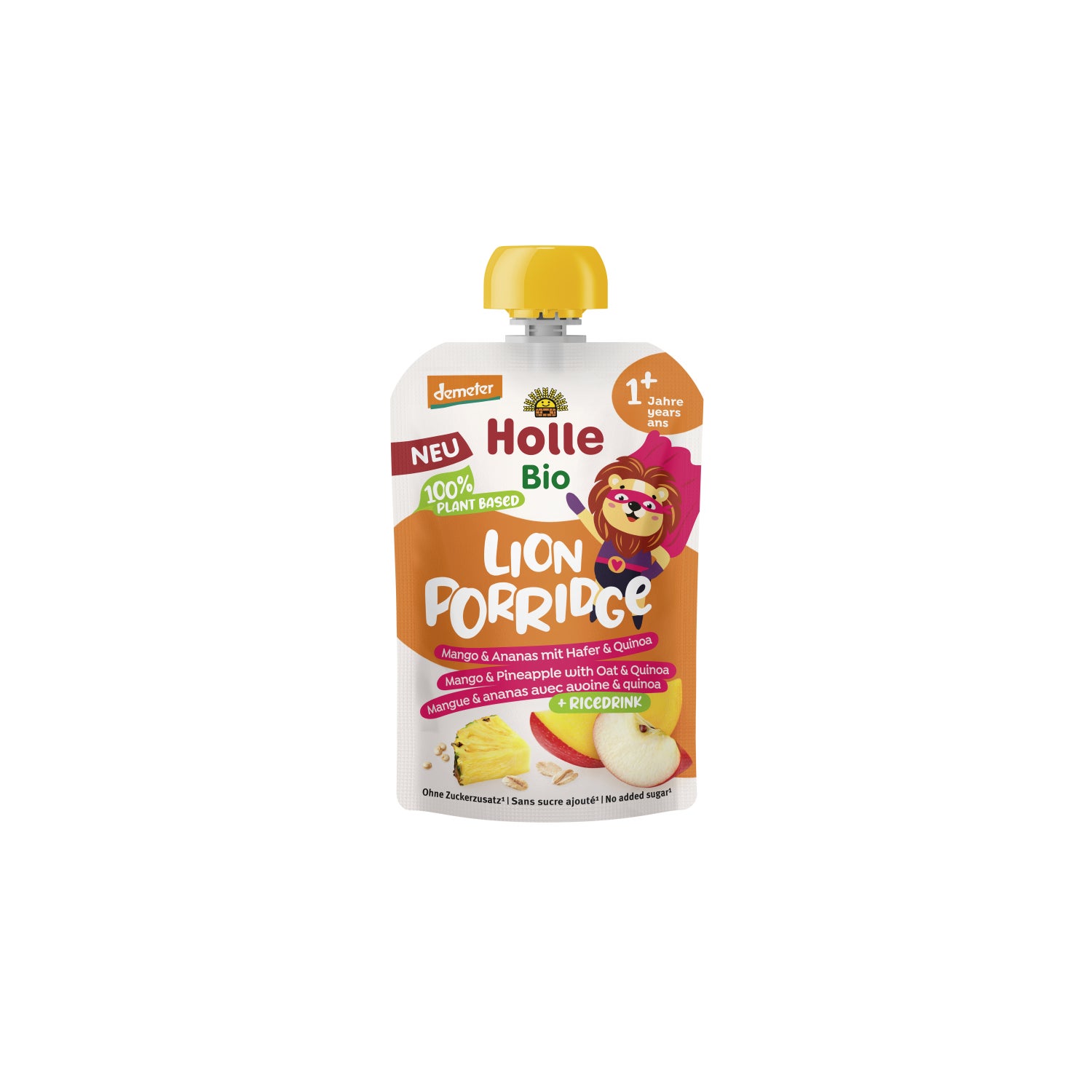 Holle Bio Lion Porridge Pomme Myrtille Riz Avoine Quinoa est un produit conçu pour préparer une délicieuse bouillie d'avoine avec des fruits. Ce snack est particulièrement pratique, car son emballage refermable facilite son transport, en faisant une option idéale à emporter.