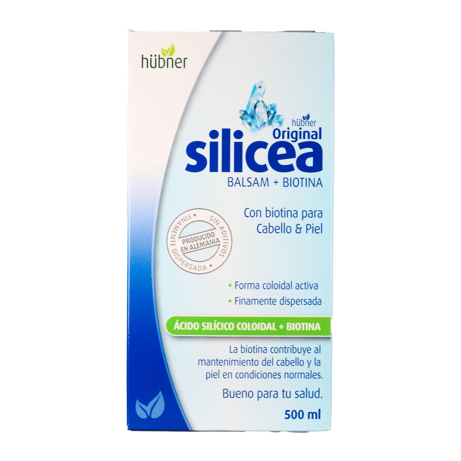 Hübner Silicea Baume + Biotine 500ml est une formule peau-cheveux qui associe du silicium pur à de la biotine. Le silicium aide à renforcer les tissus conjonctifs, essentiels pour préserver une peau lisse et lumineuse, des cheveux forts et brillants, ainsi que des ongles résistants et sans stries.