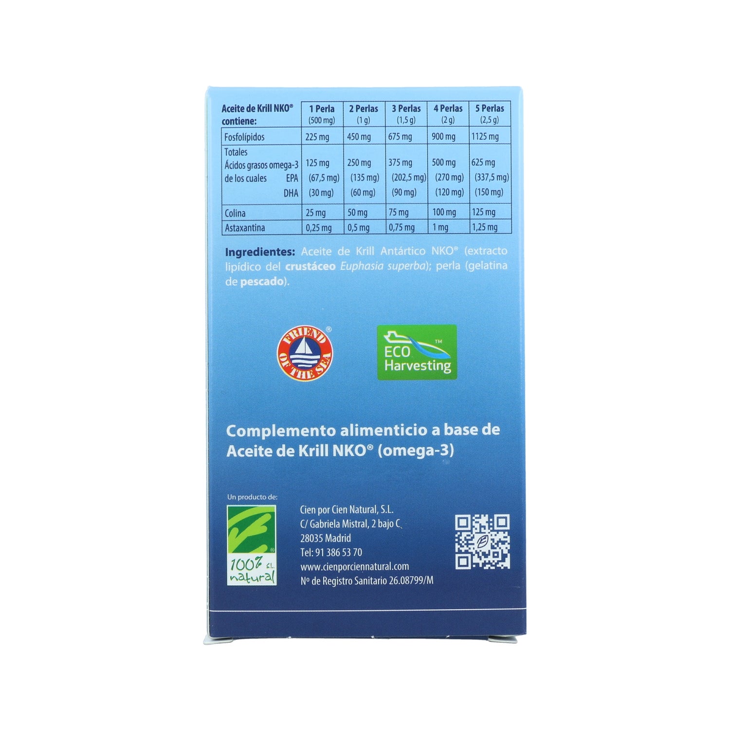 100% Natural Krill Oil Nko 40 capsules de 500mg est un complément alimentaire à base d'acides gras oméga 3 (EPA et DHA) naturellement liés aux phospholipides et antioxydants.Il a été développé par un procédé d'extraction à froid, sous brevet NKO®, et enrichi en choline et astaxanthine.