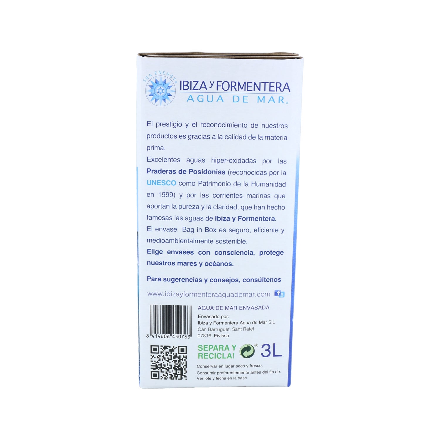 Ibiza et Formentera Eau de Mer Microfiltrée 3L est une solution naturelle conçue pour enrichir la saveur et la valeur nutritive des recettes culinaires. Provenant des eaux propres et protégées entre Ibiza et Formentera, ce produit garantit la plus haute qualité et pureté, idéal pour la minéralisation et l'apport d'oligo-éléments dans l'alimentation quotidienne.