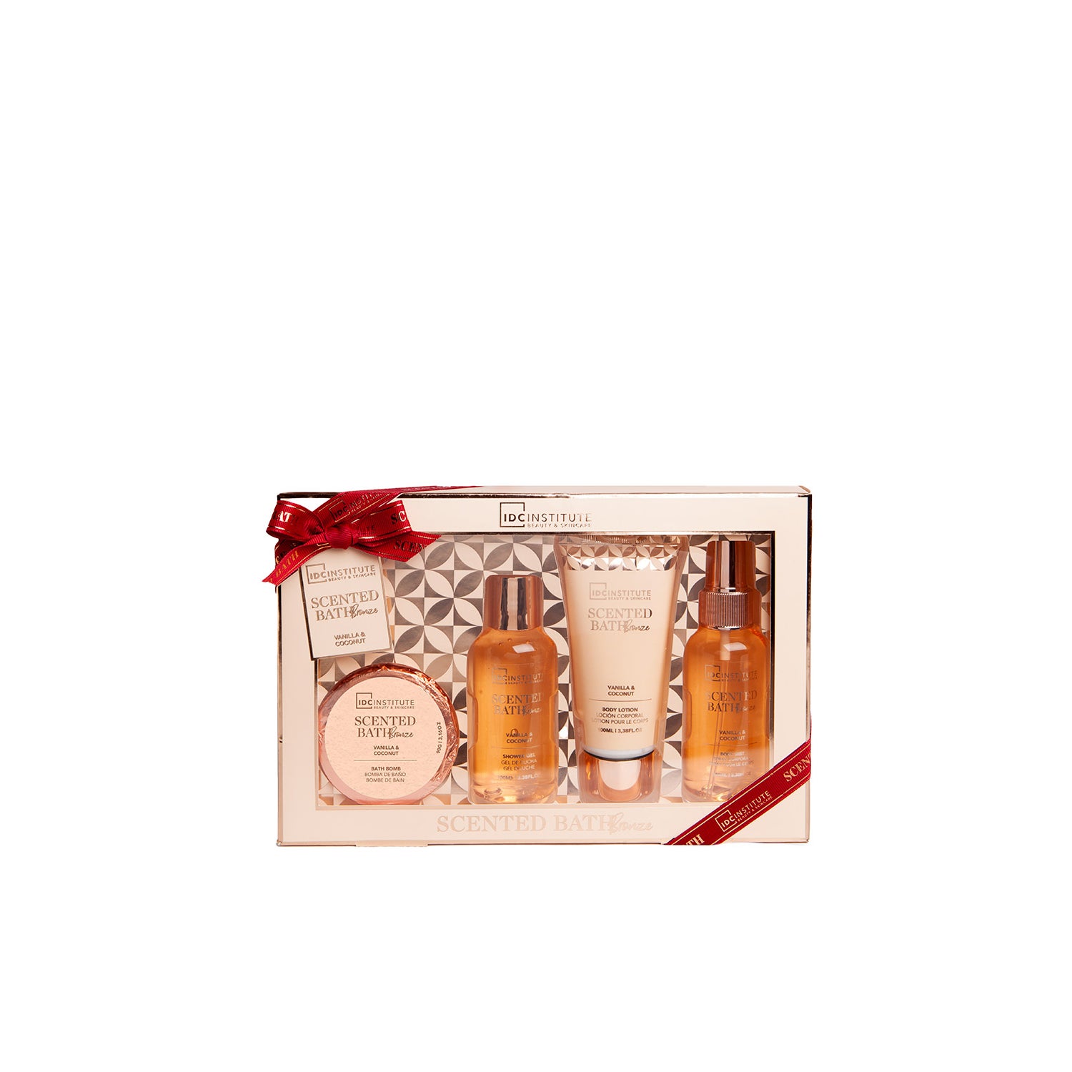 Idc Institute Scented Bath Bronze Ensemble de 4 unités est une élégante sélection de produits conçus pour offrir une expérience de bain enveloppante. Cet ensemble comprend quatre pièces, toutes parfumées avec une exquise fragrance de vanille et de coco, qui apportent une touche de douceur et de chaleur à ta routine de soin personnel.