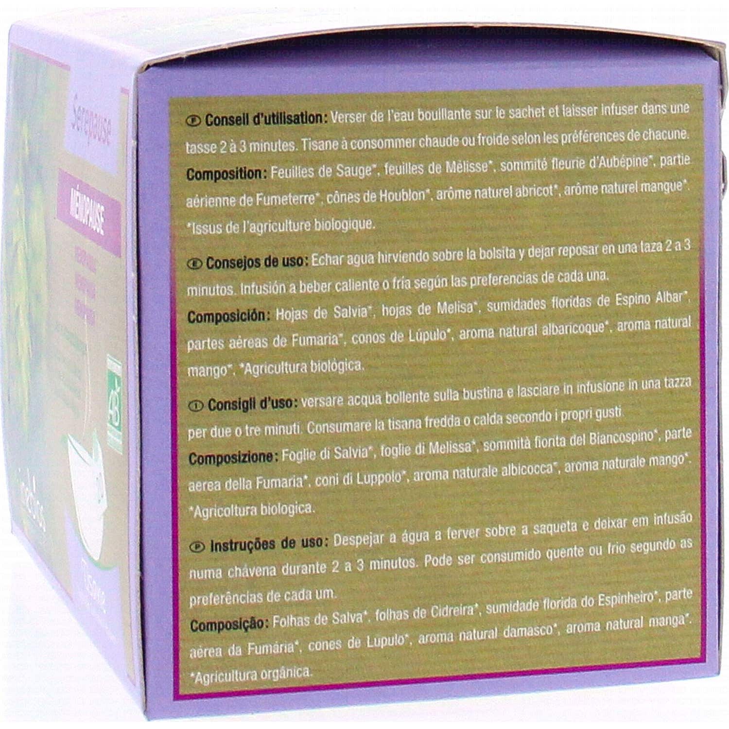 Serepause Infusion est idéale comme complément aux comprimés Serepause. Son agréable goût naturel d'abricot et de mangue transforme chaque gorgée en une expérience plaisante de bien-être et de confort.