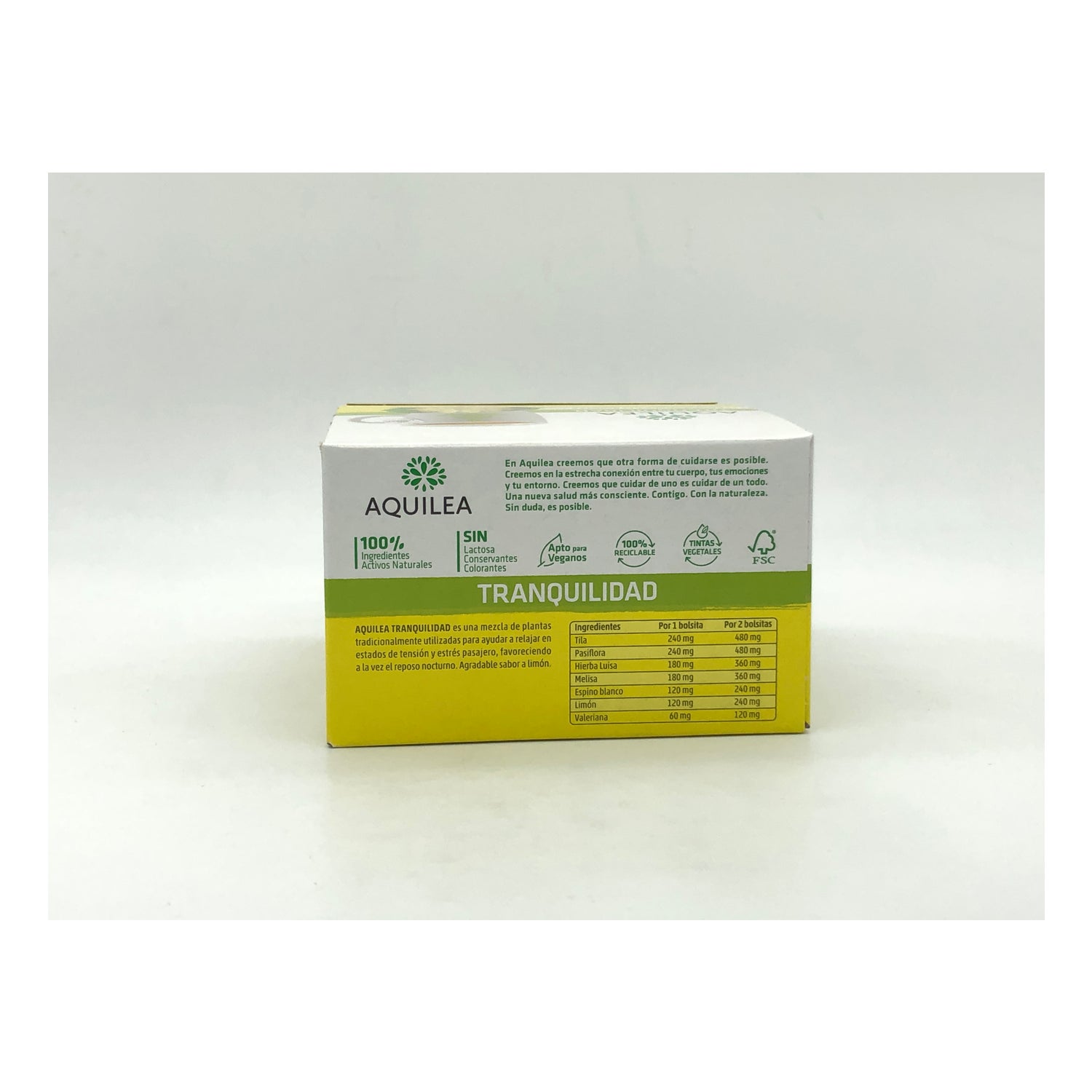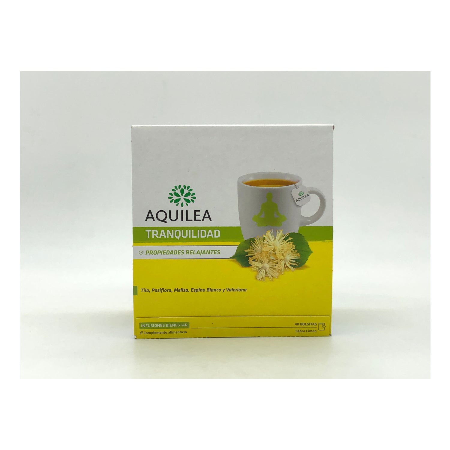 Aquilea Infusions Tranquility 40 sachets est une infusion de plantes telles que la passiflore, la mélisse, l'aubépine, la valériane et la verveine citronnée, traditionnellement utilisée pour aider à se détendre dans les états de tension et de stress temporaire, tout en favorisant le repos nocturne avec un agréable goût de citron.