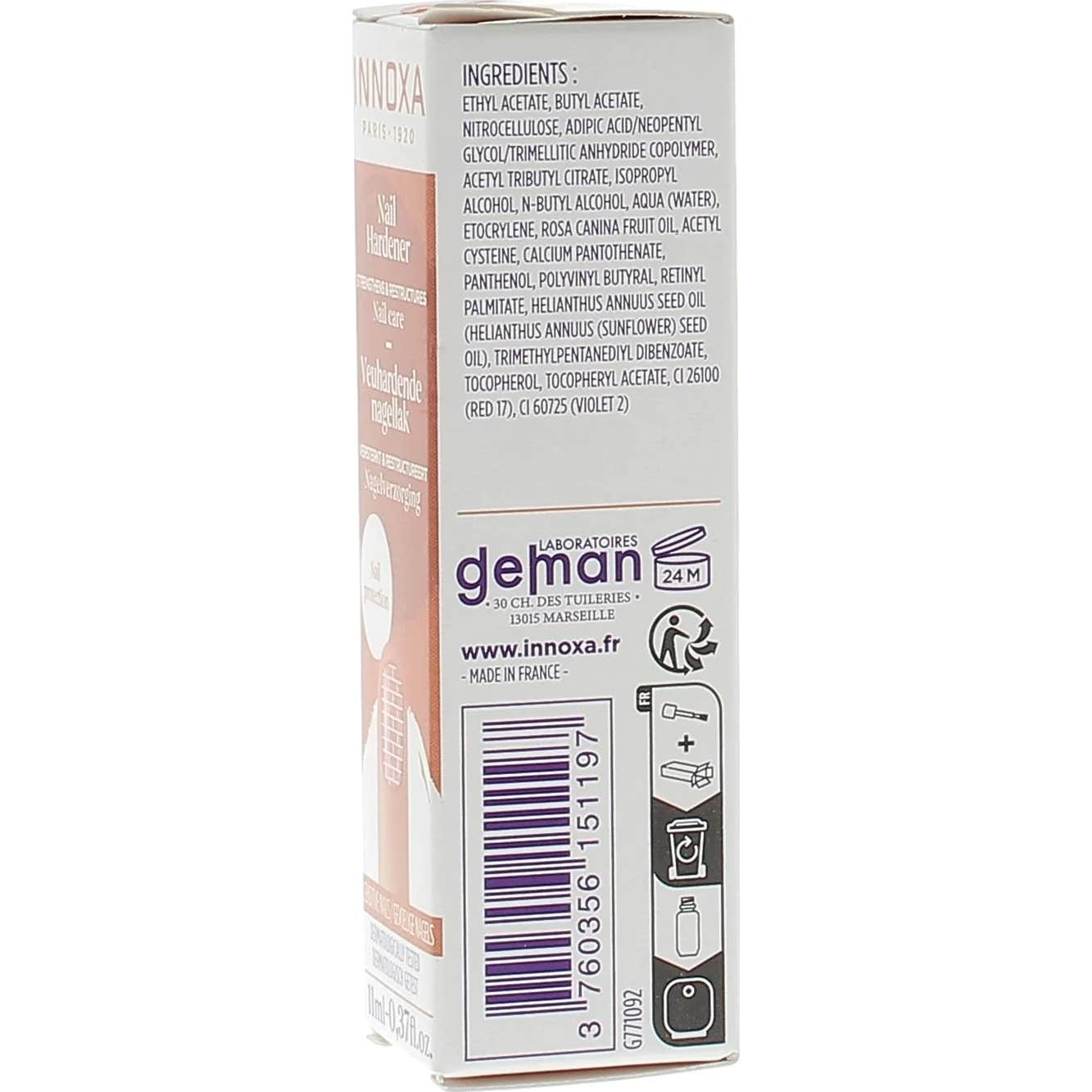 Depuis sa fondation en 1920, Innoxa s'est engagée à répondre aux besoins de beauté des femmes, créant des produits qui allient textures agréables et couleurs intenses. Ce durcisseur fait partie d'une gamme de vernis spécialement adaptée aux ongles sensibles, avec une formule qui est :