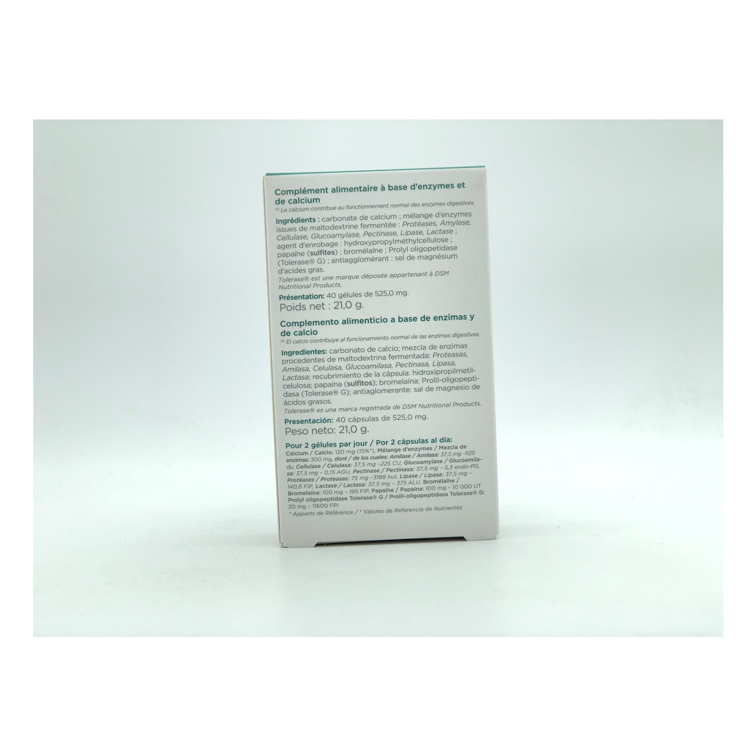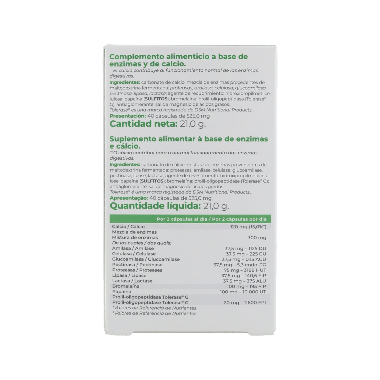 Complément alimentaire qui contribue à améliorer les fonctions digestives de l'organisme. Formulé avec un mélange d'enzymes fermentées, la bromélaïne et la prolyl oligopeptidase, qui contribuent à un métabolisme énergétique normal et maintiennent un transit intestinal régulier. Il contient également du calcium et de la papaïne, qui soutiennent les performances athlétiques et facilitent l'équilibre minéral de l'organisme. Il favorise également la digestion du gluten et du lactose.