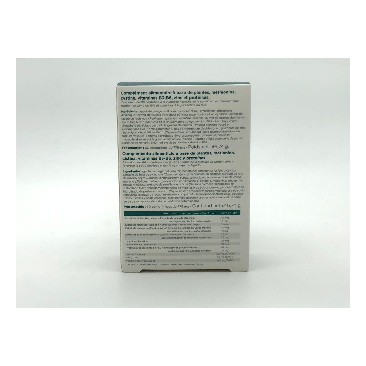 Complément alimentaire à base de plantes Méthionine, cystine, vitamines B3-B6 et zinc qui maintient la fonction hépatique.