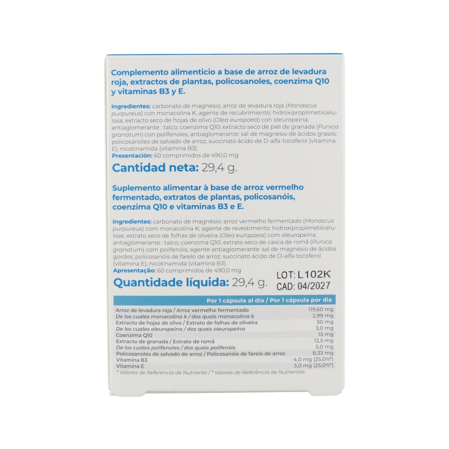 Sa formule contient de la monacoline K de levure rouge de riz, qui favorise le maintien d'une cholestérolémie normale. Les extraits de fruit d'olivier, de grenade et la vitamine E agissent comme antioxydants et aident à protéger les artères en inhibant la formation de risques pour la santé cardiovasculaire.