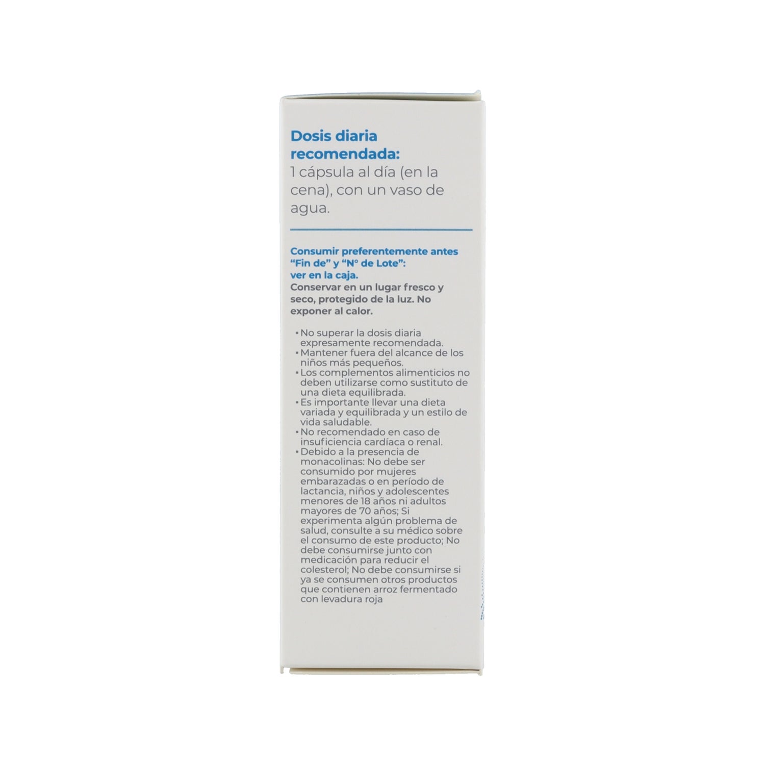 Par ailleurs, il convient de ne pas associer plusieurs compléments alimentaires contenant de la levure de riz rouge. Ne prenez pas plus de 3 mg de monacolines par jour et suivez toutes les instructions figurant sur la notice. Elle est déconseillée chez les enfants, les personnes âgées de plus de 70 ans, et pendant la grossesse/l'allaitement. En cas de doute ou d'effets indésirables, consultez un(e) professionnel(le) de santé.