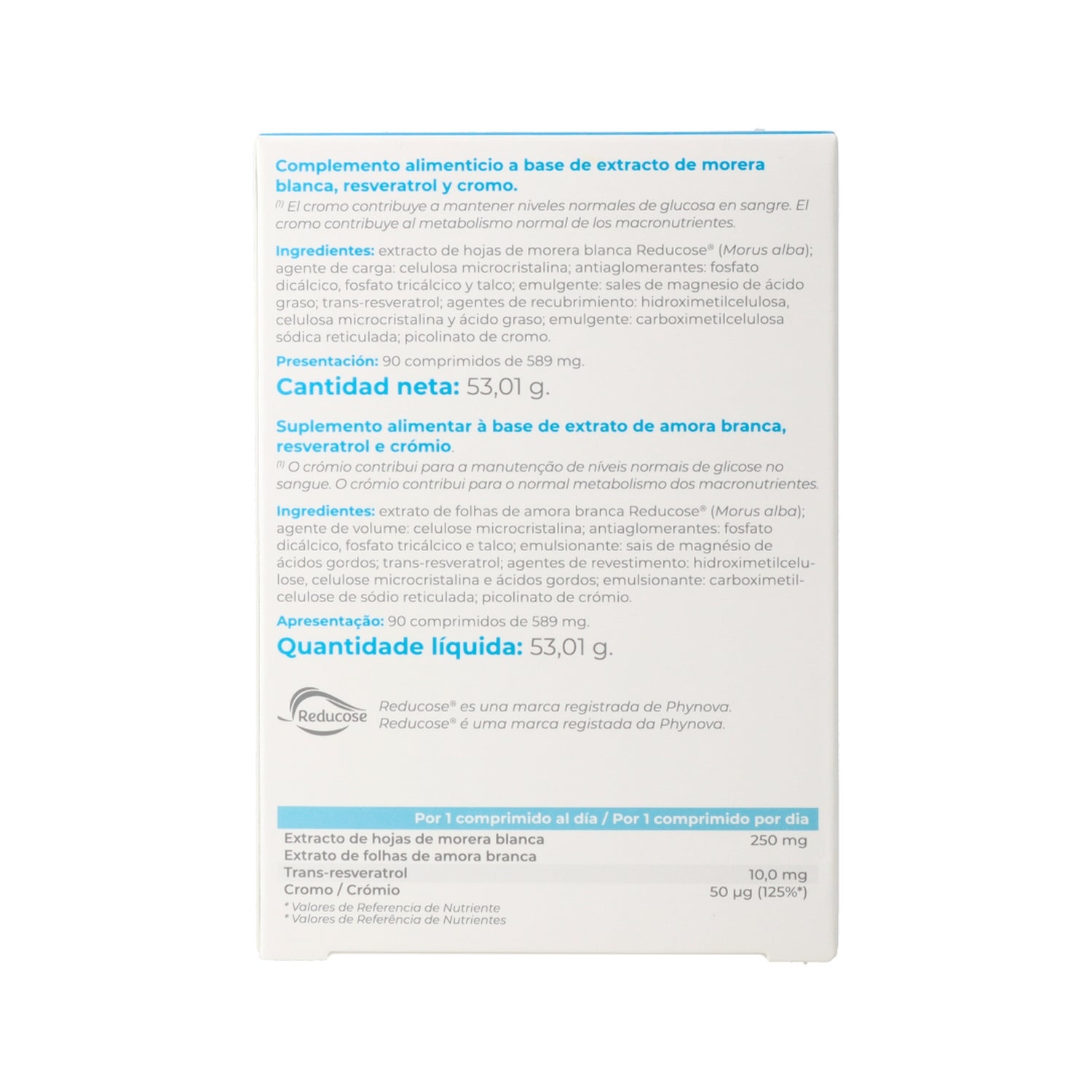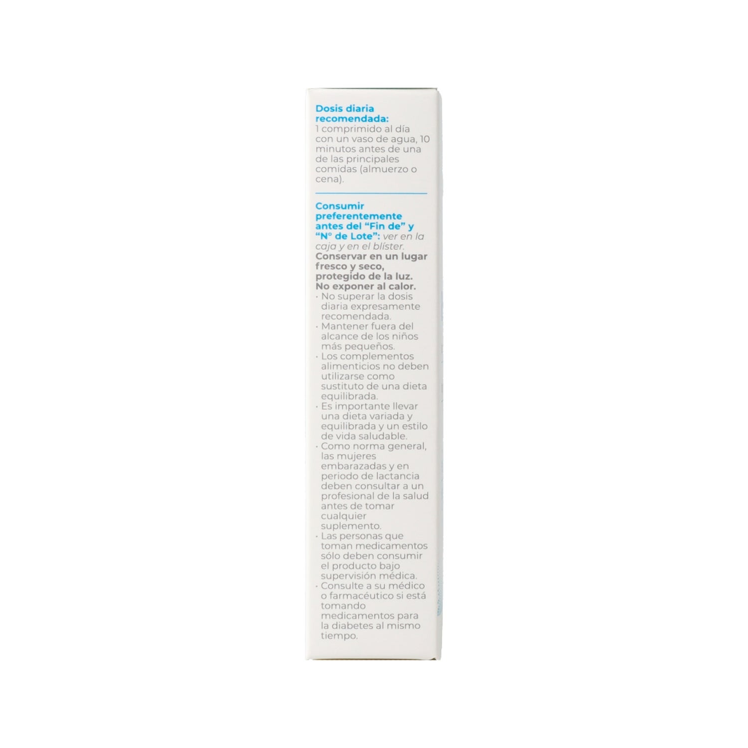 Agent de charge (Cellulose microcristalline), Extrait d'écorce de cannelle (Cinnamomum Verum) dosé en polyphénols, Agent de charge (Phosphate dicalcique, Phosphate tricalcique), Chlorhydrate de L-arginine, Acide alpha lipoïque, Gluconate de zinc, Hydrolysat de protéines de riz, Agents d'enrobage (Hydroxypropyl méthylcellulose, Acide stéarique, Cellulose microcristalline), Antiagglomérants (Stéarate de magnésium, Dioxyde de silicium), Extrait de racine de Polygonum cuspidatatum (Polygonum cuspidatatum), Acide stéarique, cellulose microcristalline), agents anti-agglomérants (stéarate de magnésium, dioxyde de silicium), extrait de racine de Polygonum Cuspidatum dosé en resvératrol, levure dosée en sélénium, nicotinamide (vitamine B3), arôme d'orange, biotine (vitamine B8), chlorhydrate de thiamine (vitamine B1), picolinate de chrome.