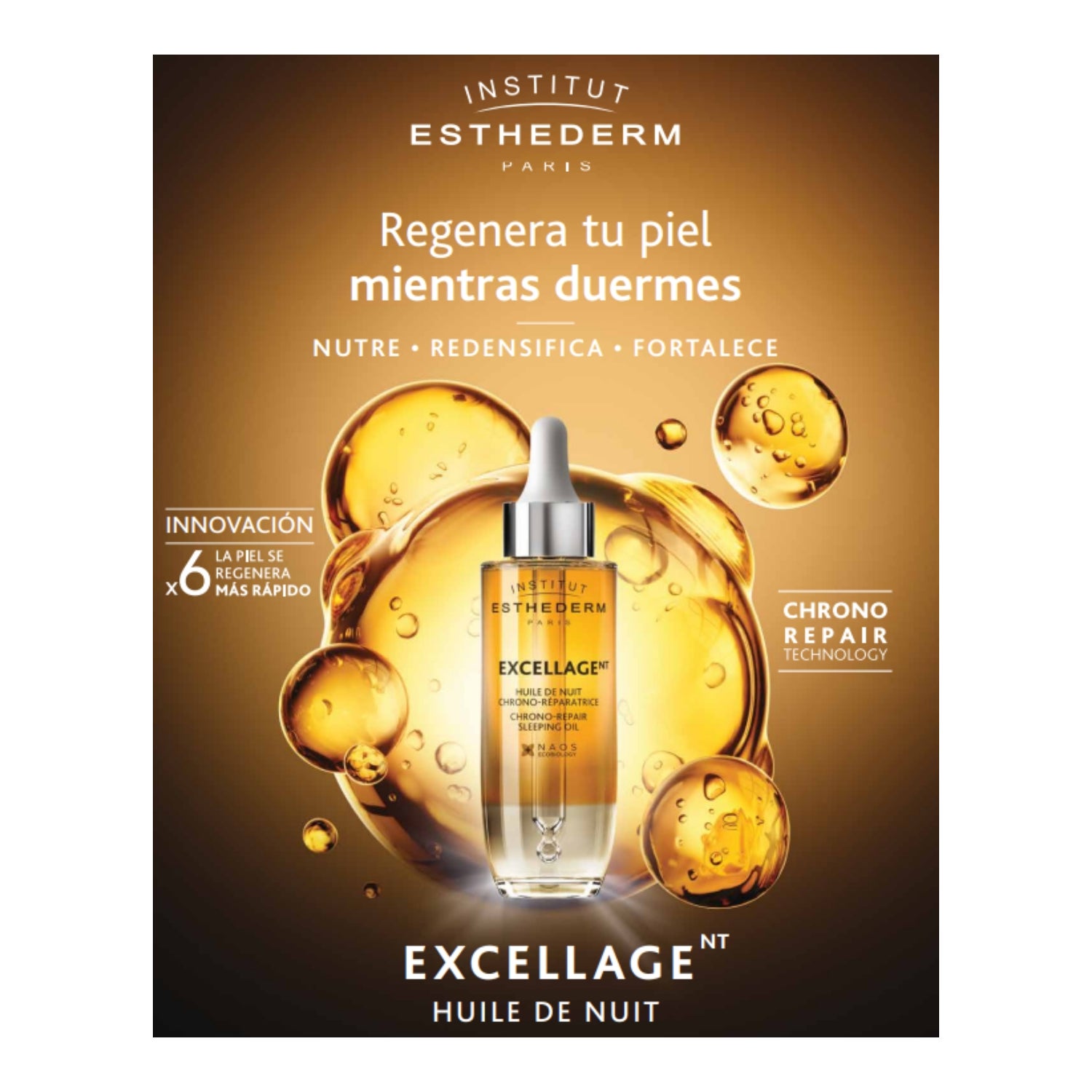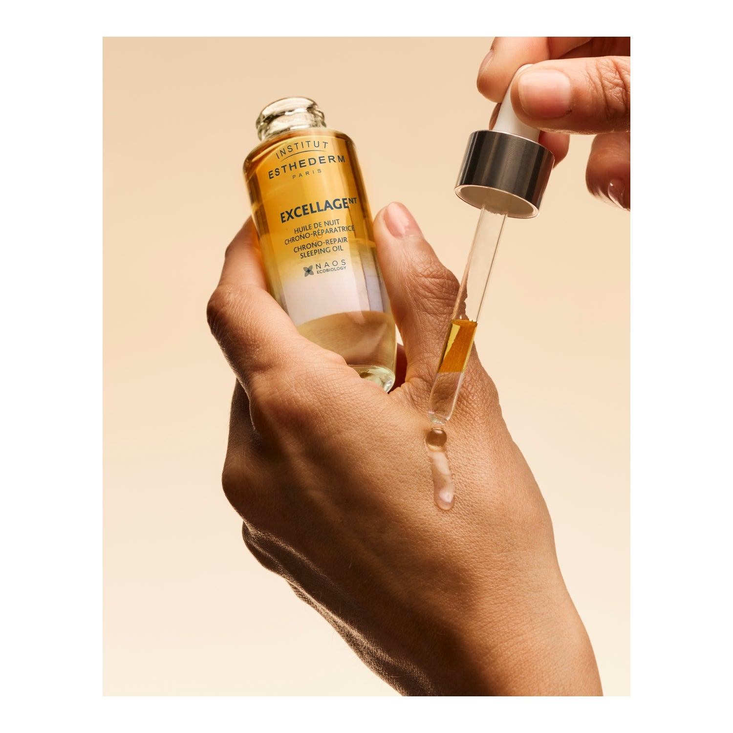 L'Huile de Nuit Excellage agit en profondeur pour resynchroniser le rythme naturel de la peau, lui permettant de se régénérer et de se renforcer pendant le sommeil.
