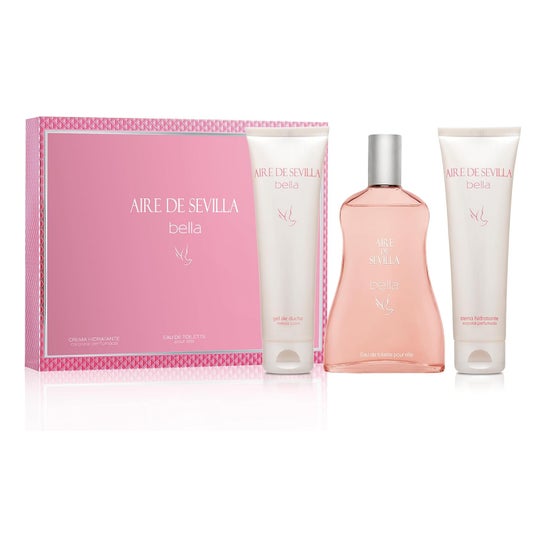 Institut Espagnol Aire de Sevilla Bella Set 3 uds fragrance florale féminine réunit une Eau de Toilette de 150 ml et deux crèmes corporelles hydratantes. C'est un set pensé pour les femmes adultes qui recherchent un parfum pour un usage quotidien et un soin corporel complet.