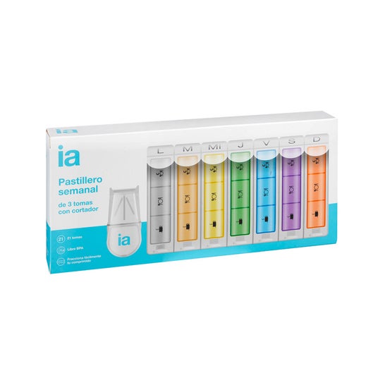 Interapothek Pack Pilulier Hebdomadaire 3 Prises + Coupe-Comprimés est un produit conçu pour offrir une solution pratique et efficace pour l'organisation des médicaments. Son design compact et fonctionnel comprend 21 compartiments, ce qui permet de classer les doses de manière hebdomadaire et par prises journalières.