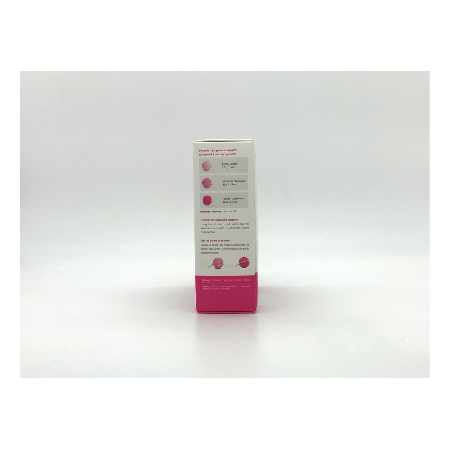 Intimina Laselle Kit Perles d’Exercices Kegel 28/38/48g comprend 3 poids progressifs qui aident à renforcer les muscles de votre périnée en toute sécurité : 28g, 38g, 48g.