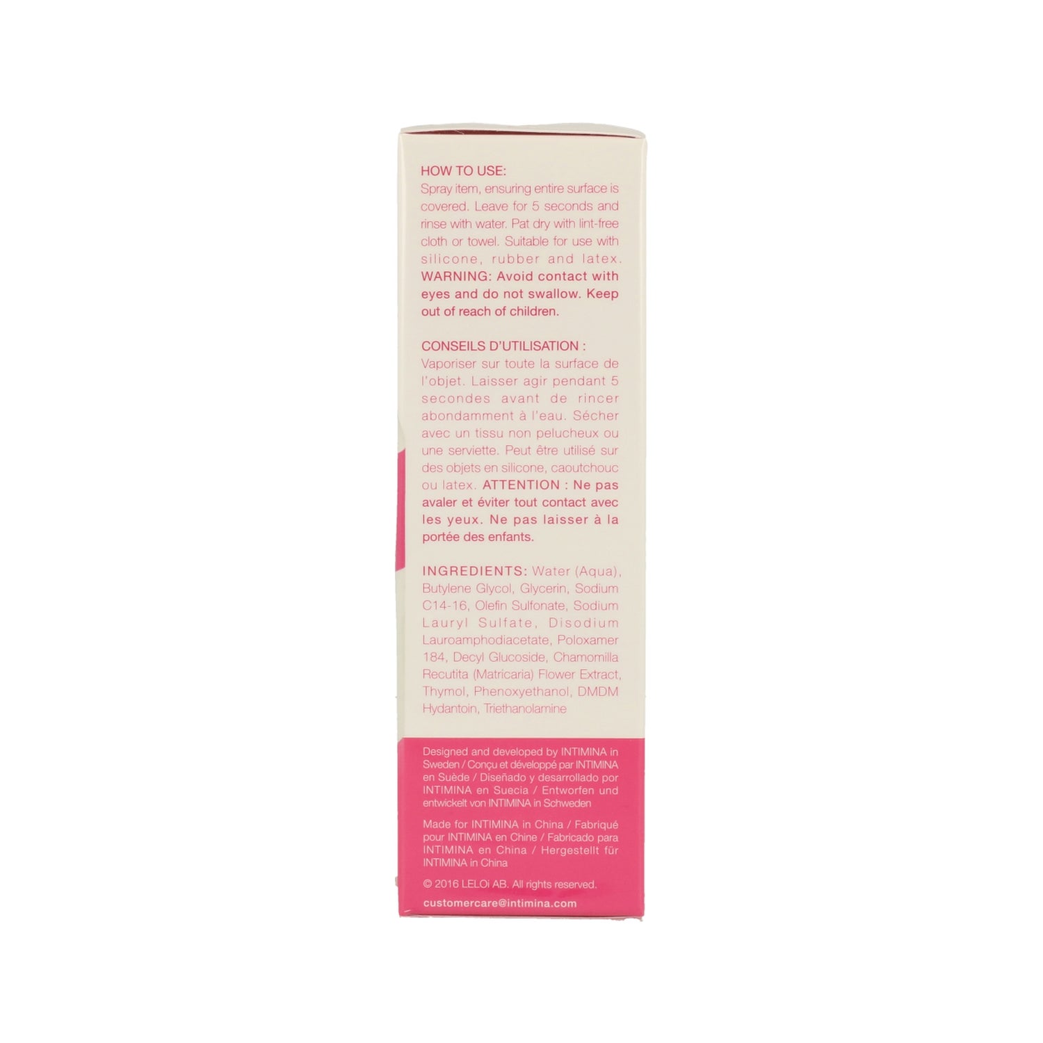 Intimina Nettoyant Pour Accessoires Intimes 75ml est un spray hygiénique sans alcool destiné à l'entretien des objets intimes.