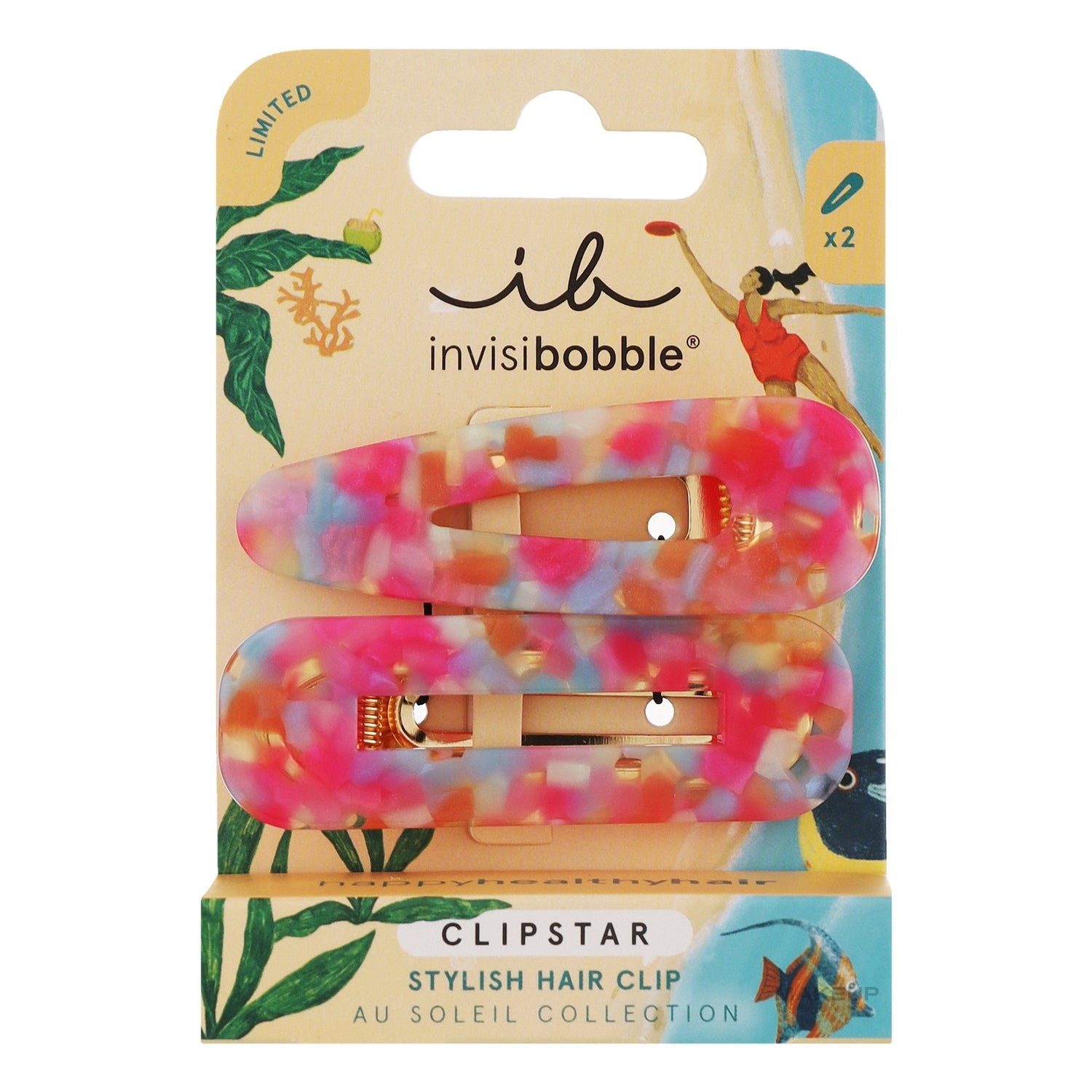 Invisibobble Clipstar Au Soleil Dazzling Wave 2 Unités est un ensemble de crochets pour les cheveux, présenté dans une édition limitée. Ces Clipstar sont idéaux pour obtenir une coiffure décontractée et confortable, parfaits pour profiter de la brise estivale.