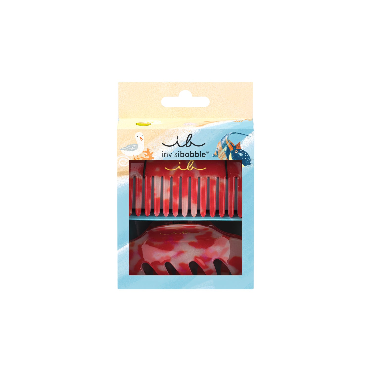 Invisibobble Set Au Soleil Beachcomber Pente + Mola est un ensemble qui comprend une élastique à cheveux et un peigne.