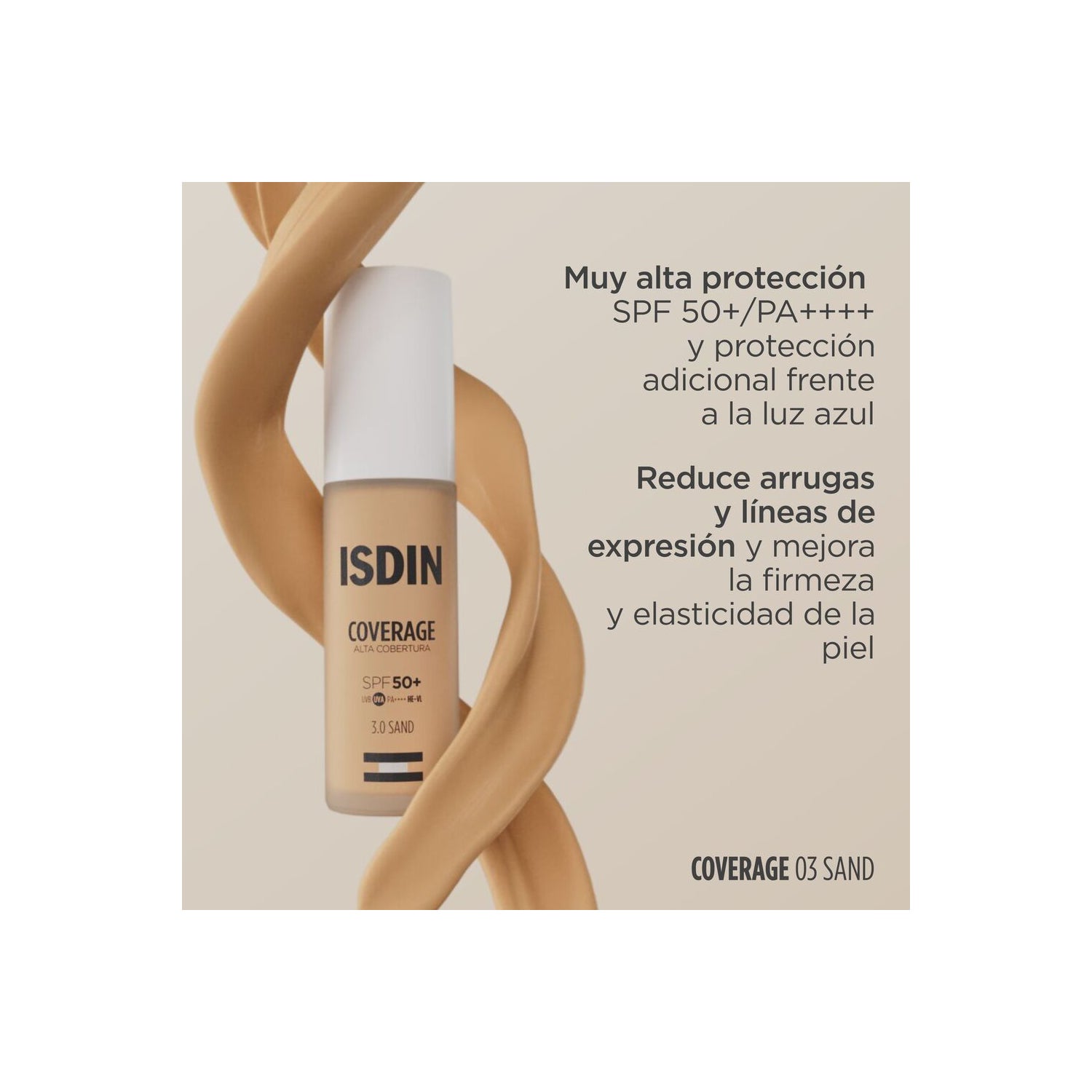 Base de maquillage avec protection très haute SPF50+. Avec des filtres solaires et des ingrédients actifs qui aident à prévenir et à combattre les signes du vieillissement de la peau causés par le soleil.