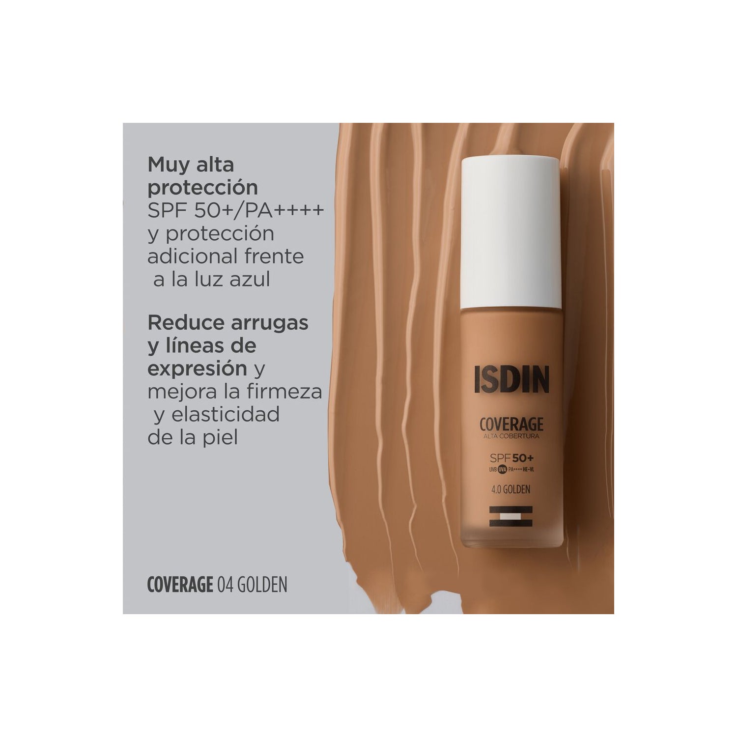Base de maquillage avec protection très haute SPF50+. Avec des filtres solaires et des ingrédients actifs qui aident à prévenir et à combattre les signes du vieillissement de la peau causés par le soleil.