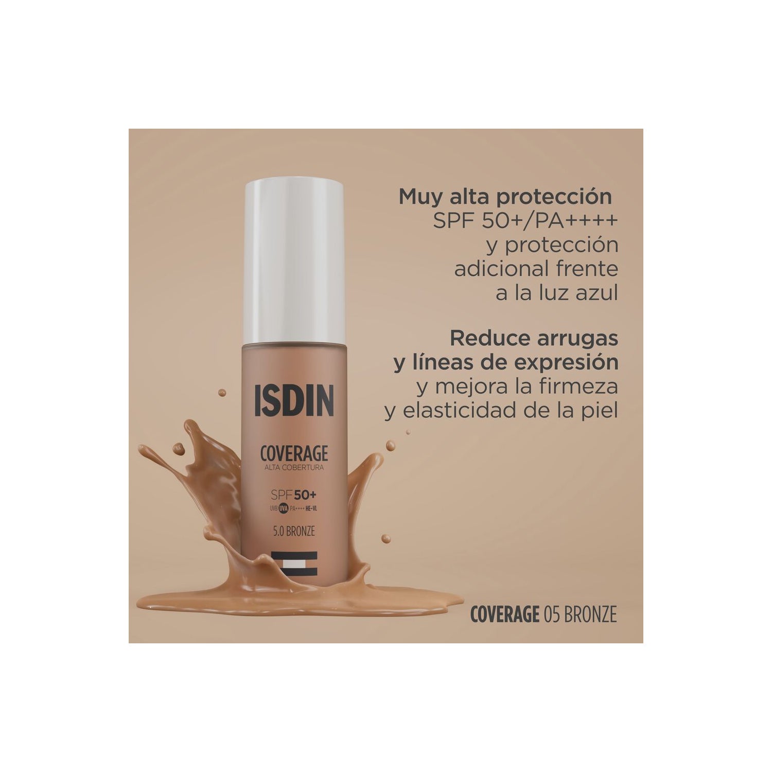 Base de maquillage avec protection très haute SPF50+. Avec des filtres solaires et des ingrédients actifs qui aident à prévenir et à combattre les signes du vieillissement de la peau causés par le soleil.