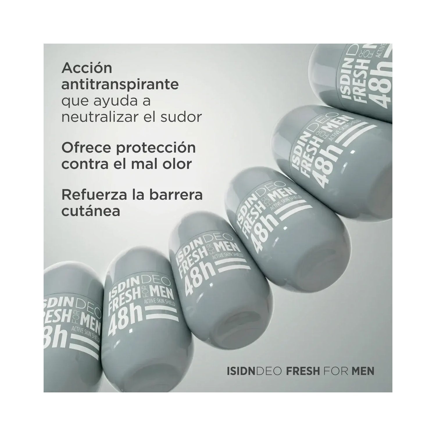 ISDIN Deo Fresh pour Hommes 48H Roll-on 50ml est un déodorant qui offre un haut pouvoir de contrôle de la transpiration, agissant en neutralisant les odeurs et la transpiration.